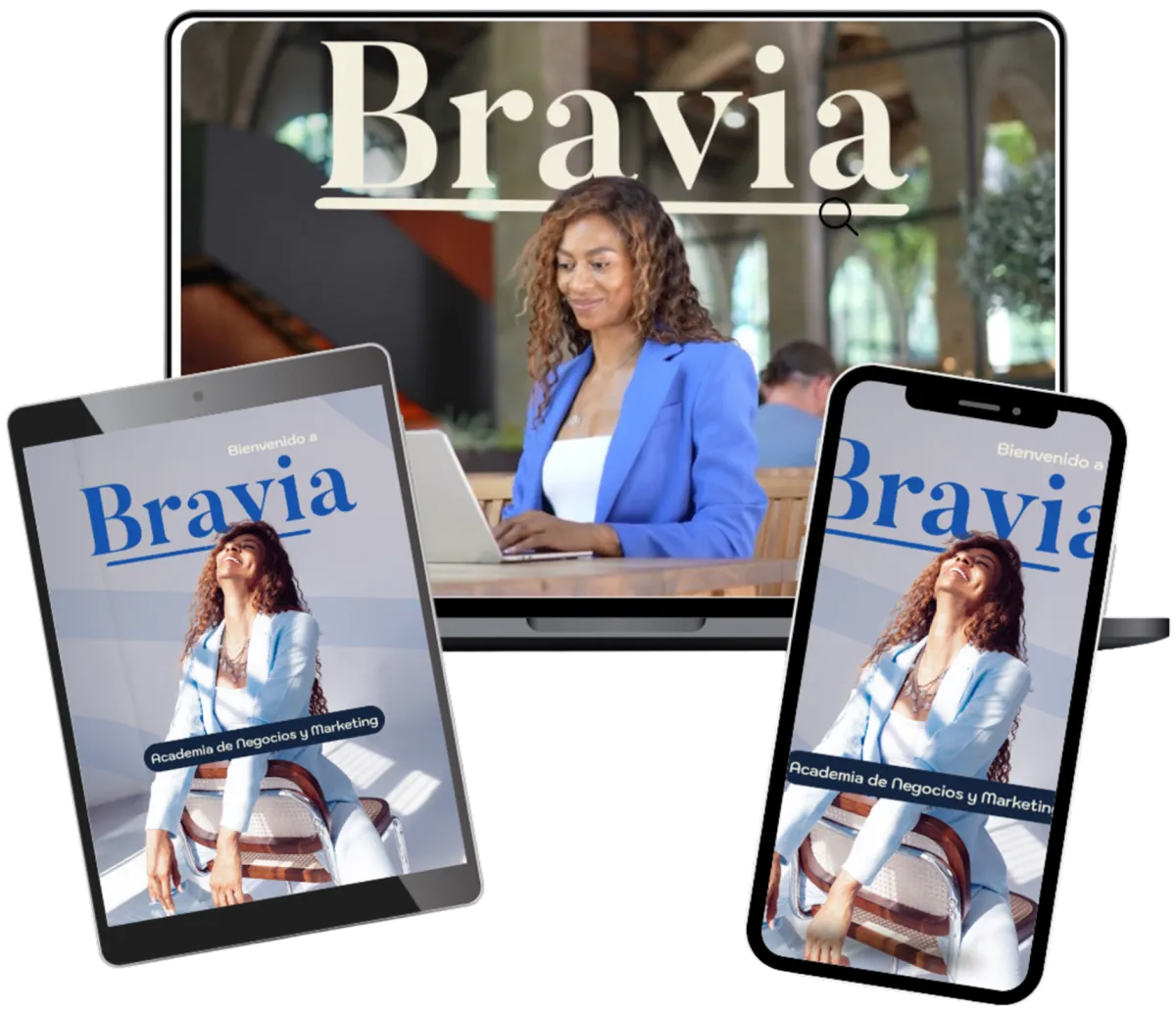 Con Bravia aprendes a construir tu negocio desde cero. Dominar el Marketing como un profesional. Entrenar tu mente para emprender con claridad, enfoque y sostener el éxito, incluso en los días más difíciles.